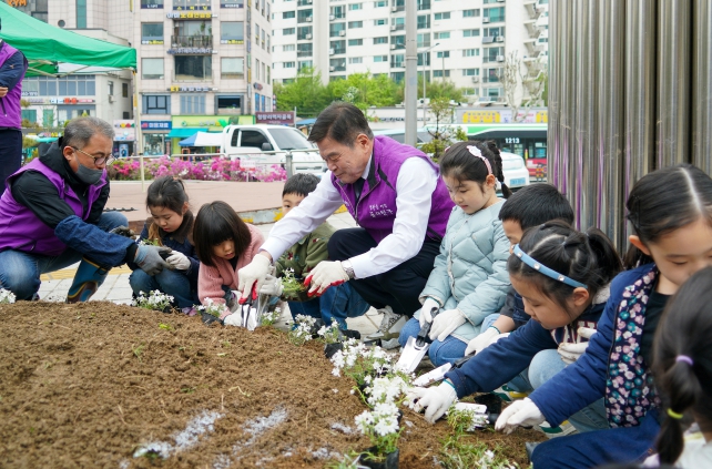 이날 행사에는 이필형 동대문구청장을 비롯해 어린이집 원아, 경증치매가족, 서울 청년센터 오랑 대학생, 동대문구 정원사 등 다양한 구민들이 참석했으며, 이들은 함께 꽃을 식재하며 청량리역 앞 광장 매력정원을 아름답게 채웠다.