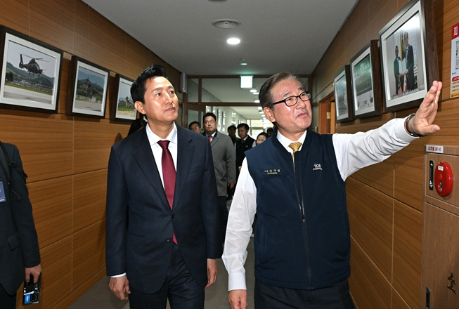 오 시장은 강구영 KAI 사장으로부터 차세대 전투기 KF-21을 비롯해 FA-50, 한국형 UAM 등에 대한 설명을 듣고 환담을 나눴다.
