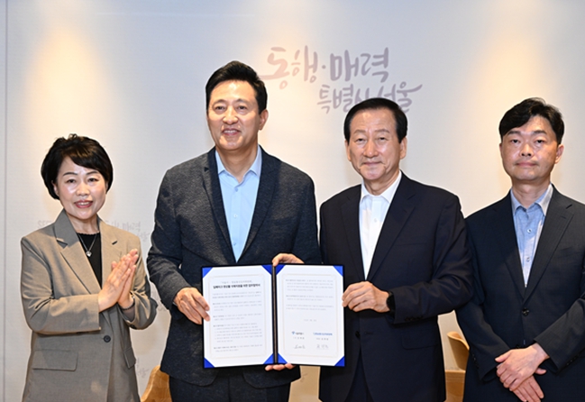 ▲ 오세훈 서울시장이 28일 오후 류희림 방송통신심의위원장과 ‘딥페이크 영상물 삭제 지원을 위한 업무협약’을 체결했다. |