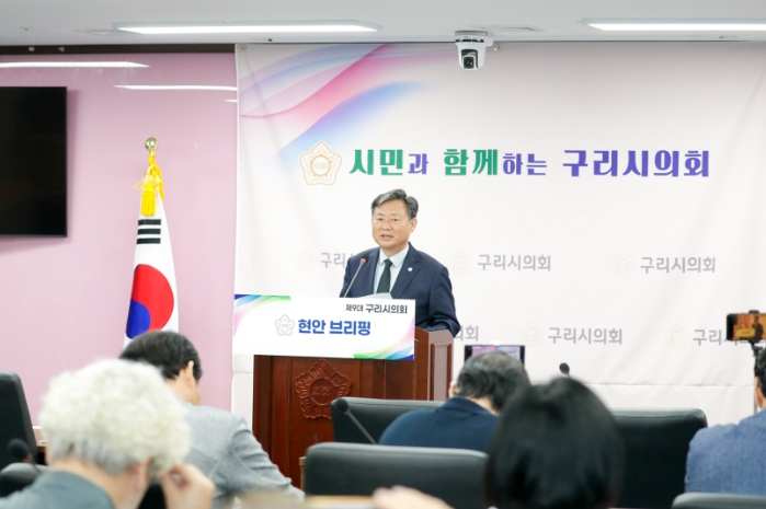 이날 브리핑에서는 신동화 의장이 ▲구리시의회 열린의회 운영(구리시의회 사진‧영상 공모전, 북카페 조성, 명사초청강연회) ▲토평2공공주택지구 개발 사업 관련 국외연수 추진 ▲구리대교 명명을 위한 구리시의회의 노력 ▲대상포진 예방접종 확대 환영 ▲시민들에게 별내선 이용 요청, 총 다섯 가지를 설명했다.