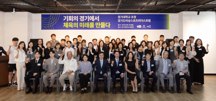 ▲ 25일 오후 경기대학교 호연관에서 열린 경기도 여성 스포츠리더스 포럼에서 김동연 경기도지사가 기념촬영을 하고 있다. |