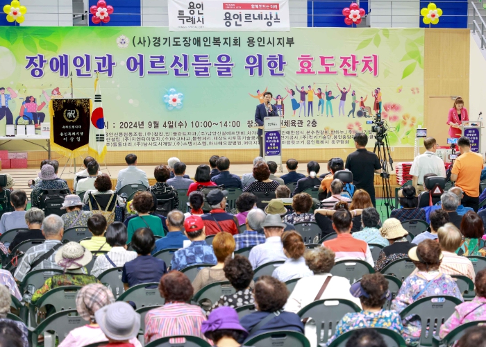 [뉴스서울] 이상일 용인특례시장은 4일 용인실내체육관에서 열린 ‘장애인과 어르신을 위한 효도잔치’를 찾아 행사를 축하하고 장애인 복지 증진에 힘쓴 봉사자 3명에게 표창을 수여했다.
