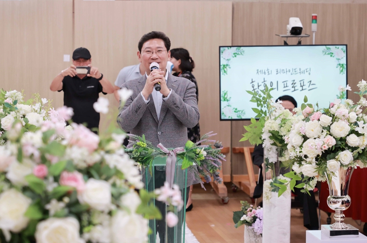 [뉴스서울] 이상일 용인특례시장은 15일 기흥구 신갈동 기흥노인복지관 강당에서 열린 리마인드 웨딩 ‘황혼의 프로포즈’ 행사에 참여해 결혼식을 올린 5쌍의 어르신과 관계자들을 격려했다.