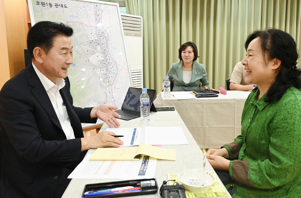 | ▲ 김동근 시장이 7월 12일 호원1동 주민센터에서 ‘현장시장실’을 열고 주민들과 소통하고 있다. |