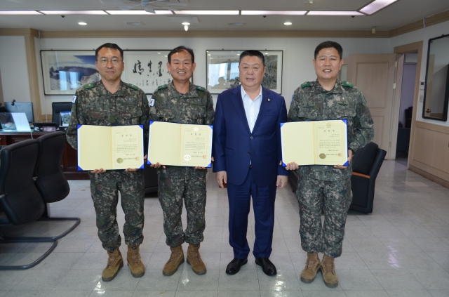 [뉴스서울] 대구 중구의회 김오성 의장은 지난 16일 의회 의장실에서 50사단 대구 중구 예비군지역대장(김영선), 기동대장(박준영), 동인동대장(정두영)에게 표창장을 수여했다.