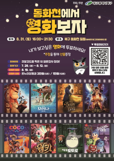 ▲ 대구 북구 한여름 밤 동화천에서 영화보자, 보고싶은 영화에 투표하고 상품도 받자! |