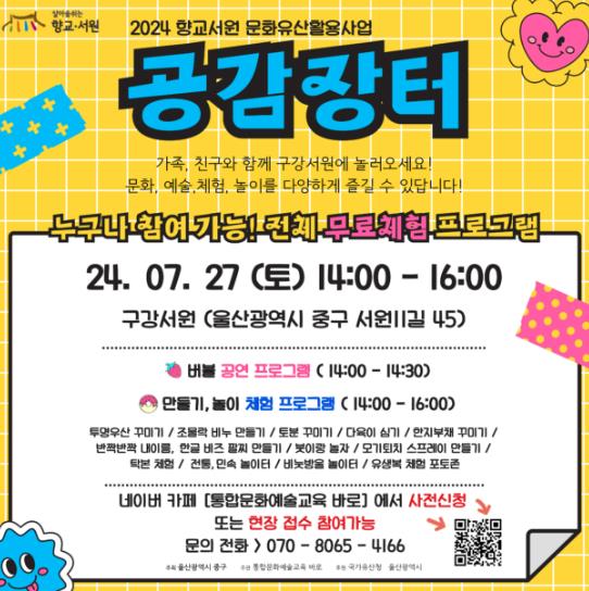 [뉴스서울] 울산 중구가 6월부터 10월까지 네 차례에 걸쳐 구강서원에서 2024 향교·서원 국가유산 활용사업의 일환으로 ‘유학콘서트-공감장터’ 행사를 개최한다.