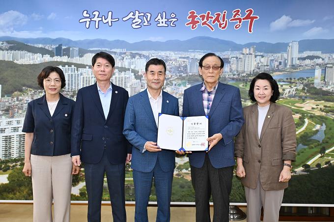 ▲ 중구, 춘강 권두호 작가에게 미술작품 기증증서 전달 |