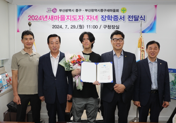 [뉴스서울] 부산 중구, 부산중구새마을회는 지난 7월 29일 구청장실에서 새마을지도자 자녀 장학생으로 선발된 00대학교 임00 학생에게 장학증서를 전달했다.