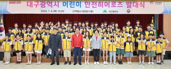 [뉴스서울] 대구광역시는 어린이의 눈높이에서 학교 주변 위험신고 등 어린이가 스스로 안전문화 활동에 참여하도록 유도하기 위해 ‘어린이 안전히어로즈’를 결성하고, 7월 4일 오후 3시 산격청사 1층 대강당에서 발대식을 개최했다.