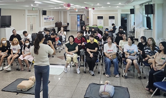 [뉴스서울] 부산 남구는 지난 8월 31일 용호3동 건강소모임 ‘장자산’과 연계하여, 부모님과 함께하는'아동·청소년 대상 심폐소생술 교육'을 용호종합사회복지관에서 실시했다.