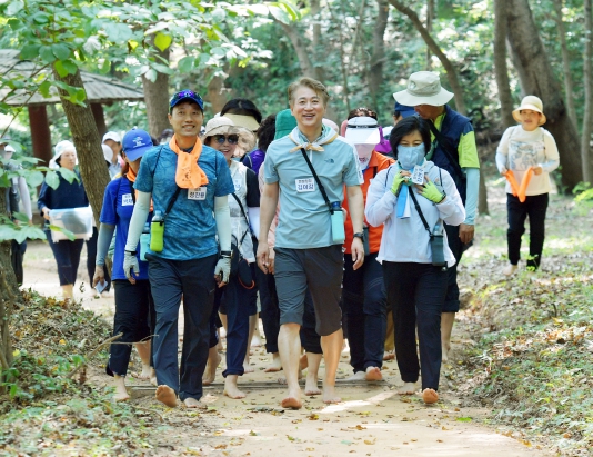 [뉴스서울] 김이강 광주 서구청장은 15일 오전 맨발걷기 주민동호회 회원들과 함께 서구 매월동 '백마산 맨발로'를 걸으며 소통시간을 가졌다.