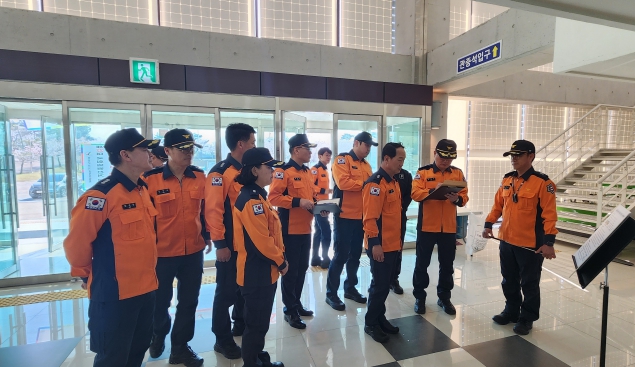 9일 홍영근 전남소방본부장은 영광스포티움 국민체육센터 개표소를 찾아 소화기 비치, 소방시설 및 피난시설 정상 작동여부 등 화재취약 요인 여부를 확인했다.