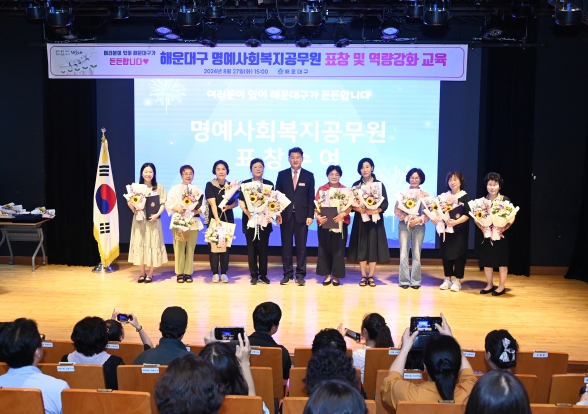[뉴스서울] 해운대구는 지난 27일 해운대문화회관에서 명예사회복지공무원 120여 명을 대상으로 명예사회복지공무원 표창 수여식과 역량강화 교육을 진행했다.