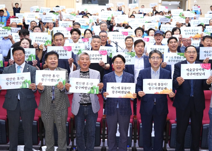 광주광역시와 (재)광주비엔날레는 19일 광주교통문화연수원에서 광주비엔날레재단 이사장인 강기정 시장, 박양우 대표이사, 홍보서포터즈 400여명이 참석한 가운데 ‘제15회 광주비엔날레 홍보서포터즈 발대식’을 개최했다.