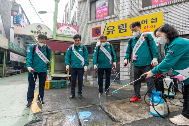이날 구청장을 비롯한 간부공무원은 주민자율방역단, 개금골목시장 상인회와 함께 여름철 구민의 안전과 건강을 기원하며 방역활동을 하면서 지역상권 활성화를 염원하는 현장의 생생한 목소리도 들었다.