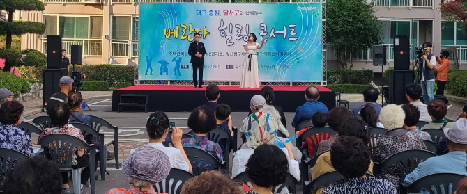 [뉴스서울] 대구 달서구가 지역 내 아파트 3개소(월성주공2단지, 앞산청구제네스, 죽전역 동화아이위시)에서 지난 3일간(6. 11.~13.) 베란다힐링콘서트를 개최해 입주민들의 많은 사랑을 받으며 성황리에 행사를 마무리했다.