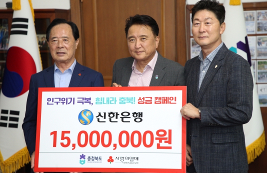 [뉴스서울] 신한은행 충북본부는 13일 오후 충북도청을 방문해 저출생·인구위기 극복 성금 1,500만원을 충북사회복지공동모금회에 기탁했다.