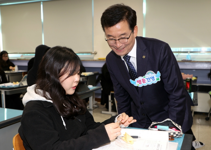 ▲ 윤건영 충청북도교육감, 수능 앞둔 고3 수험생 격려 |