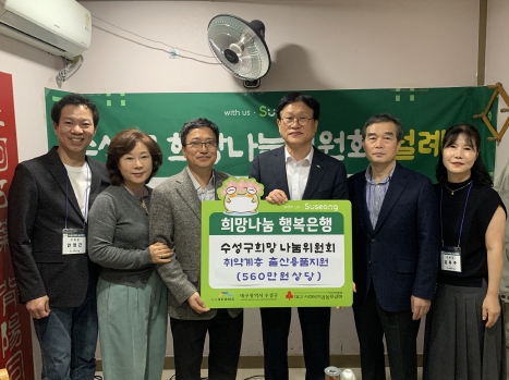 [뉴스서울] 대구 수성구희망나눔위원회는 지난 17일 취약계층 이웃 지원을 위해 출산용품(560만원 상당)을 수성구청에 전달했다.