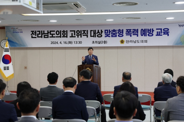 [뉴스서울] 전라남도의회는 4월 16일 의원과 간부공무원을 대상으로 도의회 초의실에서 고위직 맞춤형 4대 폭력 예방교육을 실시했다.
