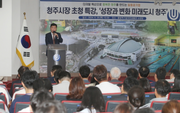 [뉴스서울] 이범석 청주시장은 29일 서원구 올림픽국민생활관에서 청주시시설관리공단 임직원 120여명을 대상으로 ‘성장과 변화, 청주의 미래’라는 주제로 특강을 진행했다.
