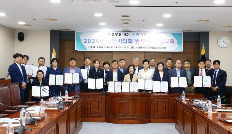 [뉴스서울] 천안시의회가 6일 오후 천안시의회 대회의실에서 의원들과 의회사무국 직원들을 대상으로 2024년 반부패청렴 교육을 실시했다고 밝혔다.