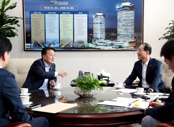 김 지사는 28일 대전 국가철도공단을 방문해 오송역 선하공간 활용방안에 대해 논의하면서 국가철도공단의 적극적인 지원에 감사를 표하고, 선하공간 활용 방안 모색 등 협력 방안에 대해 논의했다.