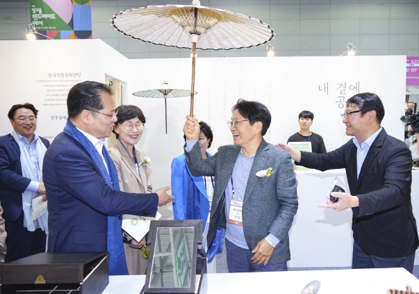이날 강 시장은 오핸즈 선정 상품을 살펴보고 베트남 등 다문화 이주여성들이 제작한 공예제품이 전시돼있는 아시아교류관, 공예명품관, 한국전통문화전당관, 지역대학관, 북구 청년창업공간 입주기업 공예홍보관, 지역 공방 등을 둘러봤다.
