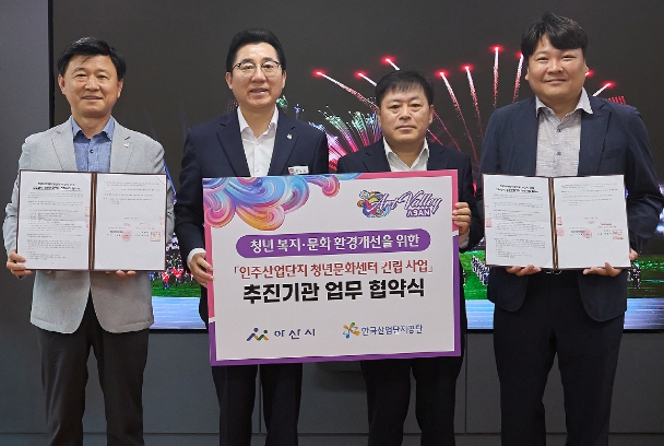 [뉴스서울] 아산시와 한국산업단지공단이 5일 시청 시장실에서 ‘인주산업단지 청년문화센터 건립 사업’ 추진 업무협약을 체결했다.