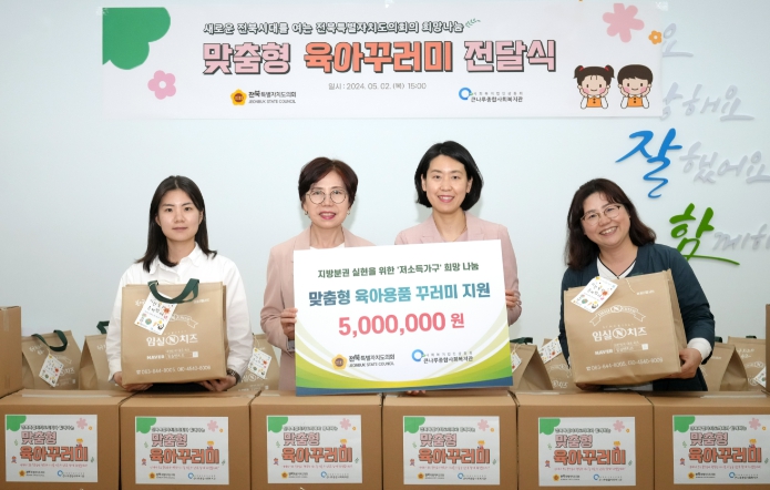 [뉴스서울] 전북특별자치도의회는 2일, 저소득가정의 맞춤형 육아지원사업에 써달라며 큰나루종합사회복지관에 성금 5백만원을 전달했다.