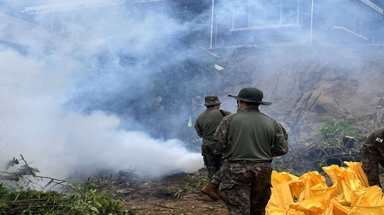 ▲ 침수 피해지역 민관군 합동 방역소독 |