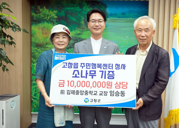 29일 고창군에 따르면 전 김제중앙중학교 임승동 교장이 1000만원 상당의 소나무 1점을 기탁했다고 밝혔다.