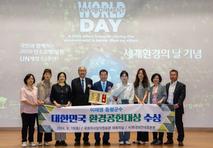 [뉴스서울] 이재영 증평군수가 15일 국회의사당 의원회관에서 열린 ‘2024 대한민국 환경공헌대상’에서 군정활동 우수 특별상을 수상했다.