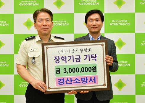 [뉴스서울] (재)경산시장학회는 경산소방서가 13일 시청을 방문하여 인재 육성을 위한 장학금 300만원을 기탁했다고 밝혔다.