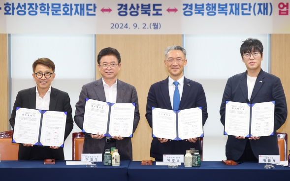 협약식에는 이철우 경상북도 도지사, 이종원 HS화성 회장, 정필재 화성장학문화재단 상무이사, 정재훈 경북행복재단 대표이사가 참석했다.