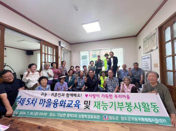 청도군은 귀농․귀촌인 융화교육과 재능기부에 많은 관심을 가지고 2024년 총 10회를 계획으로 마을별로 실시하고 있다.