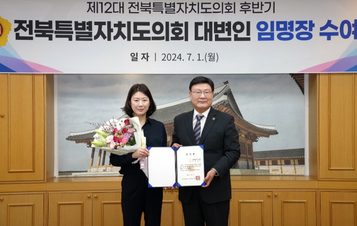 [뉴스서울] 전북특별자치도의회는 1일 서난이 의원(전주9,더불어민주당)을 제12대 도의회 후반기 대변인에 임명했다.