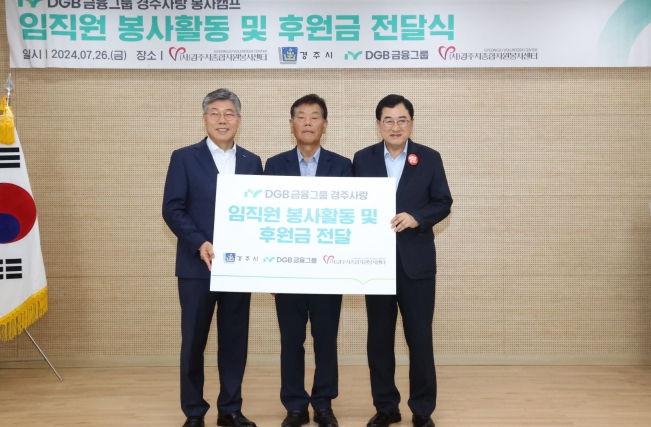 [뉴스서울] DGB금융그룹는 2024년 7월 26일 경주시 종합자원 봉사센터를 방문해 지역 상생 강화 프로그램인 ‘경주사랑 봉사캠프’를 실시하면서 지역내 사회복지시설에 성금 1천5백만원을 전달했다.