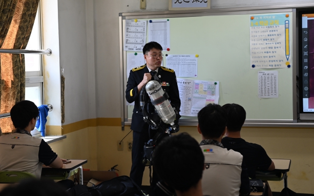 또한, 학생들은 소방관이 화재진압 중 현장에서 직접 착용하는 방화복과 공기호흡기를 직접 입어보고 각종 재난 현장 활동 중 겪었던 사례를 들으며 질의응답과 소통의 시간을 가졌다.