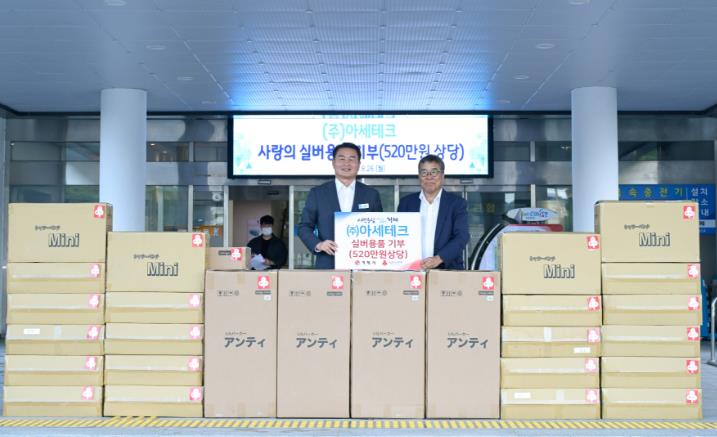 ▲ ㈜아세테크, 거제시에 실버용품(520만원 상당) 기부 |