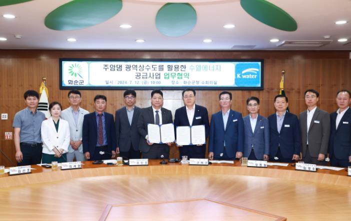 [뉴스서울] 화순군은 한국수자원공사 영·섬유역본부와 12일 화순군청 소회의실에서 하니움문화스포츠센터 내 수열에너지 공급을 위한 “주암댐 광역상수도를 활용한 수열에너지 공급사업 업무협약”을 체결했다.