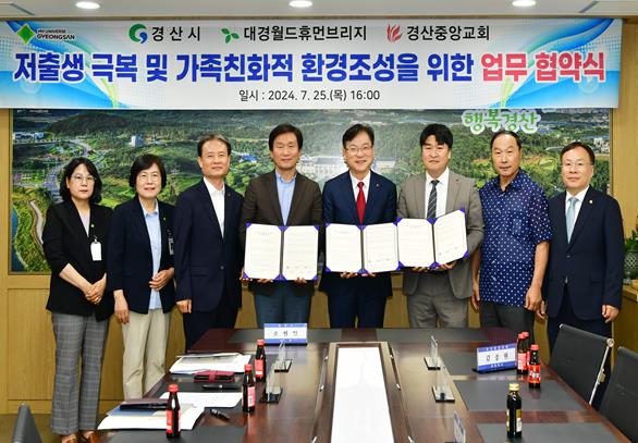 [뉴스서울] 경산시는 지난 25일, 대경월드휴먼브리지, 경산중앙교회 와 ‘저출생 극복 및 가족친화적 환경조성을 위한 업무협약’을 체결했다.
