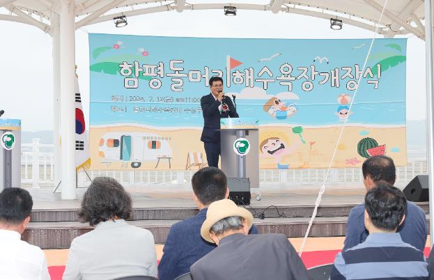 전남 함평군은 12일 돌머리 해수욕장 개장식이 함평 돌머리해수욕장 수상무대에서 개최됐다고 밝혔다.