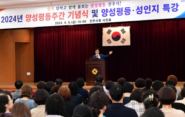 이날 기념식은 양성평등기본법에서 매년 9월 1일부터 7일까지로 정해둔 양성평등주간을 기념하기 위한 행사로‘함께 일하고 함께 돌보는 양성평등 진주시!’라는 주제로 열렸다.