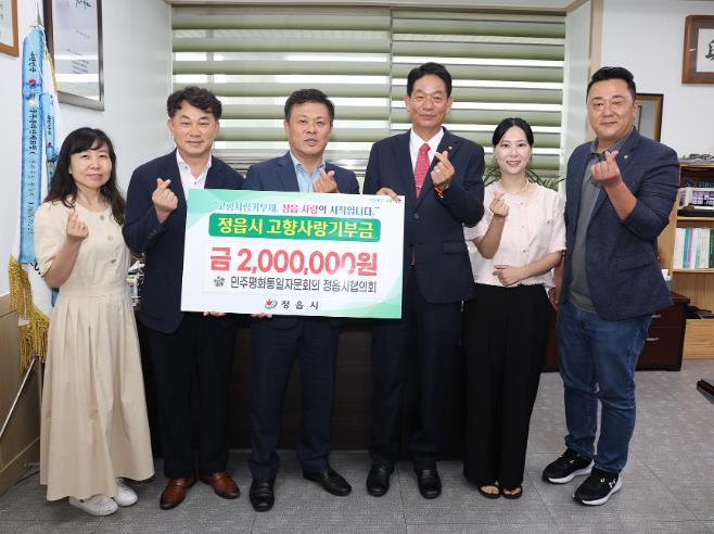 [뉴스서울] 민주평화통일자문회의 정읍시협의회는 22일 정읍시에 고향사랑기부금 200만 원을 기탁하며 지역사회를 위한 나눔을 실천했다.