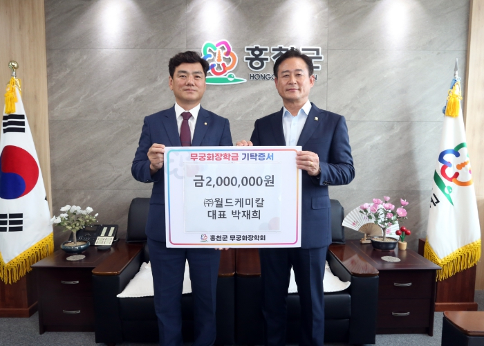 ▲ ㈜월드케미칼, 홍천군 무궁화장학금 200만원 기탁 |