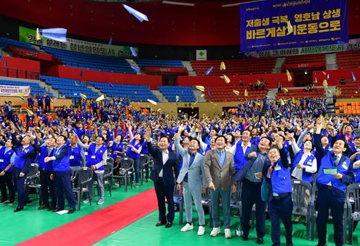 영호남의 국민화합과 저출생 극복을 염원하는 화합 퍼포먼스도 펼쳐져 참석자들의 큰 호응을 받았다.