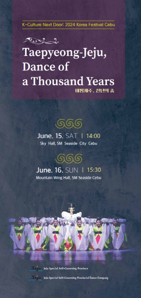 제주도립무용단은 한국-필리핀 수교 75주년을 기념해 주필리핀한국문화원(KCC)의 초청을 받아 '2024 코리아 페스티벌: 세부(K-Culture Next Door: 2024 Korea Festival)'의 메인 무대에 한국 대표 예술단체로 유일하게 참여하게 됐다.