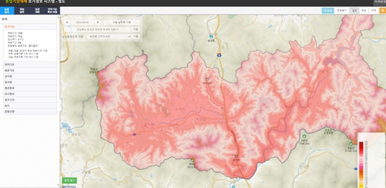 조기경보서비스는 기본 읍‧면 단위의 기상청 동네예보(5kmⅹ5km)보다 상세한(30mⅹ30m) 농장 단위의 기후 정보서비스를 제공한다.